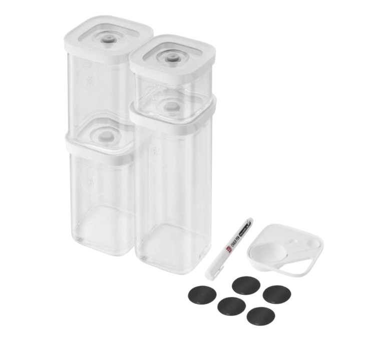 Keukenorganisatie opnieuw bedacht.Weg met de chaos in de keukenkast, hallo langdurige frisheid! Met ZWILLING FRESH & SAVE CUBE behoren bedorven etensresten en rommel in de keuken tot het verleden. Het inspirerende versheidssysteem zal een revolutie teweegbrengen in de organisatie van je keuken : met meer versheid, meer orde en meer design.Alles voor uw frisheid.Pro nummer één: het luchtdichte deksel. Het zorgt voor een perfecte opslag van je droge voeding. Perfect voor het bewaren van hoogwaardige thee, koffie en specerijen bijvoorbeeld. En het wordt nóg frisser! De CUBE-boxen zijn compatibel met onze ZWILLING FRESH & SAVE vacuümpompen. Dat betekent: je verwijdert de lucht eenvoudig met één druk op de knop. Het resultaat: je voedsel blijft langer vers en smaakvol, knapperig blijft knapperig.Gewoon duidelijker.Nu hoef je alleen nog maar zoveel versheid bij te houden. Maar ook dat is geen probleem. Dankzij het glasachtige materiaal kun je altijd zien wat en hoeveel er in je dozen zit. Daarnaast kun je gebruik maken van de herschrijfbare NFC-labels. Schrijf er gewoon de inhoud op en plak ze op de dozen. En als je bijvult: veeg en herschrijf. Maar het kan nog slimmer: scan de labels met je smartphone en verbind ze met de ZWILLING app. Hiermee kun je je voorraad volgen, de vulniveaus bijhouden en meldingen ontvangen wanneer voedsel bijna op is.