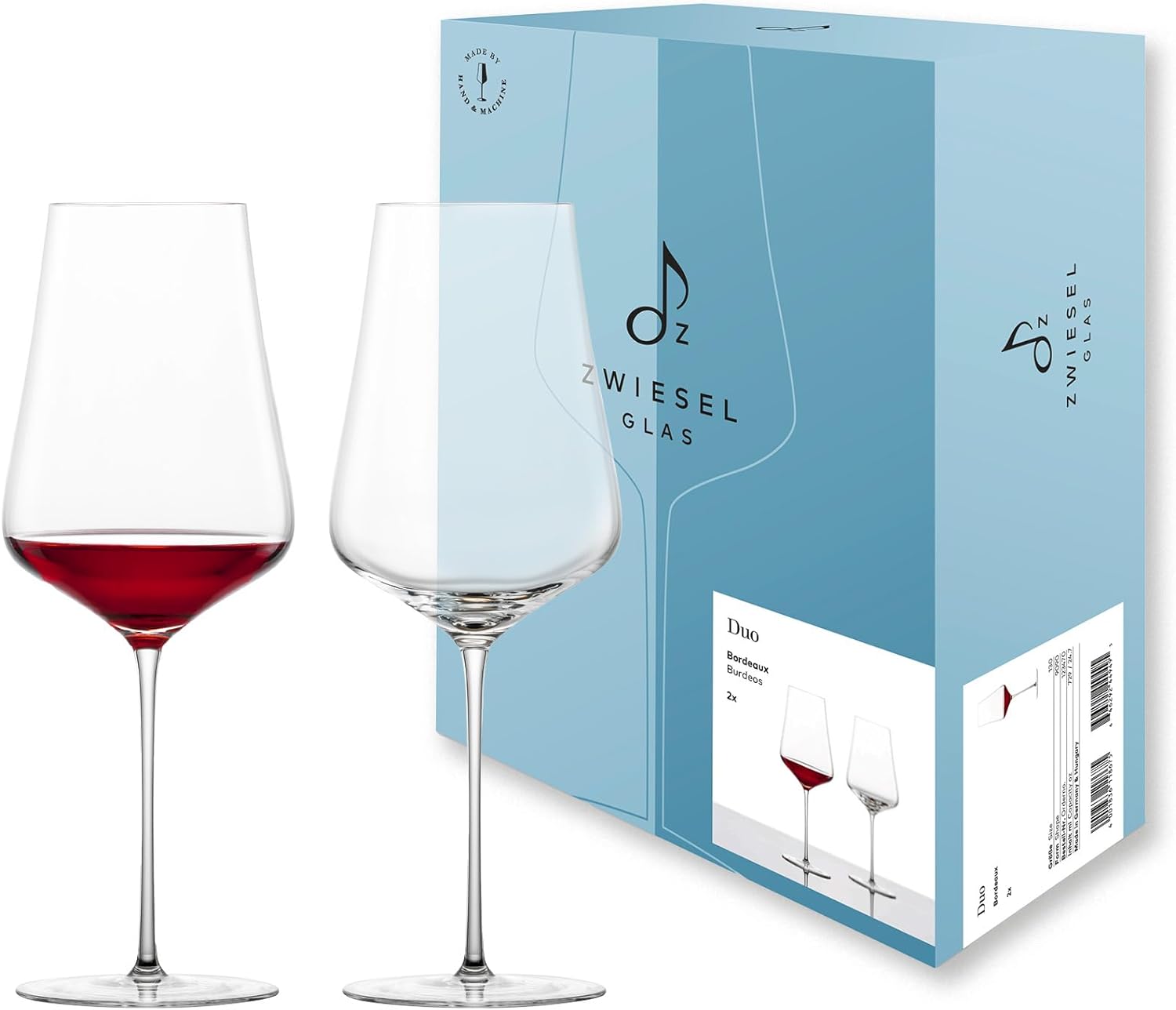 Het Bordeaux wijnglas uit de Duo serie van het merk Zwiesel Glas combineert traditioneel vakmanschap met moderne technologie, waardoor een unieke glaservaring ontstaat. Beschreven als een "filigraan maar functionele glaservaring", combineert de Duo collectie letterlijk vakmanschap met ultramoderne machineprecisie. De machines van Zwiesel Glas produceren met absolute precisie de kelk van de glazenserie. De delicate, elegante kelk straalt lichtheid en stabiliteit uit, terwijl de flinterdunne steel en de brede voet zijn gemaakt door meester-glasblazers.